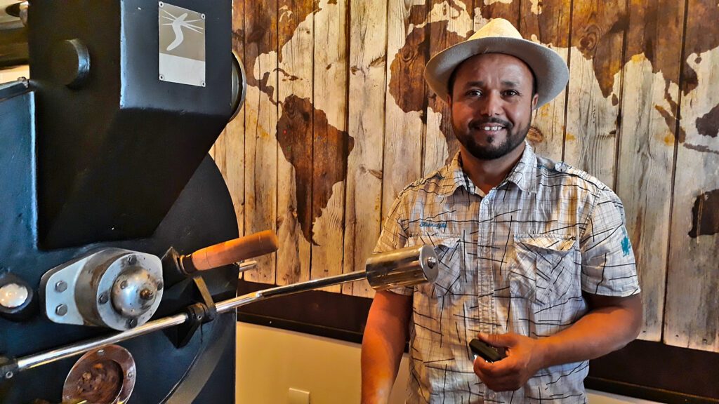 Nous ouvrons notre atelier boutique deux fois par semaine. Afin d’être plus proche de nos clients, Noureddine se déplace sur différents marchés hebdomadaires ainsi que sur différentes manifestations locales (salons, foires, marchés artisanaux ou de Noël). Vous pouvez trouver une large sélection de cafés dans différents magasins, producteurs locaux, boulangerie et épiceries fines… Noureddine torréfie des cafés sélectionnés du monde entier de haute qualité parmi les meilleurs du monde.